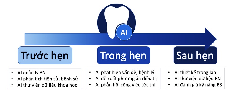 Ngày nay AI đang được sử dụng rộng rãi hầu hết các lĩnh vực như sản xuất, dịch vụ, vận tải, y tế, giải trí, công nghệ thông tin…. Riêng lĩnh vực nha khoa, AI đang được ứng dụng để thực hiện nhiều nhiệm vụ từ việc đơn giản như cải thiện kỹ thuật đánh răng của bệnh nhân đến chẩn đoán sâu răng, lập kế hoạch điều trị phức tạp như implant, chỉnh nha. Nhờ trí tuệ nhân tạo ứng dụng vào công nghệ kỹ thuật số làm cho các quy trình khám và điều trị nha khoa trở nên hiệu quả hơn và có thể dự đoán được, đồng thời nâng cao chất lượng điều trị. Trong tương lai, AI hứa hẹn mang lại hiệu quả và an toàn hơn, điều này sẽ giúp tạo điều kiện cung cấp dịch vụ chăm sóc sức khỏe răng miệng tốt hơn cho nhiều bệnh nhân hơn trên toàn thế giới.